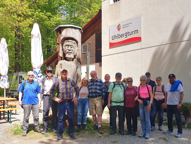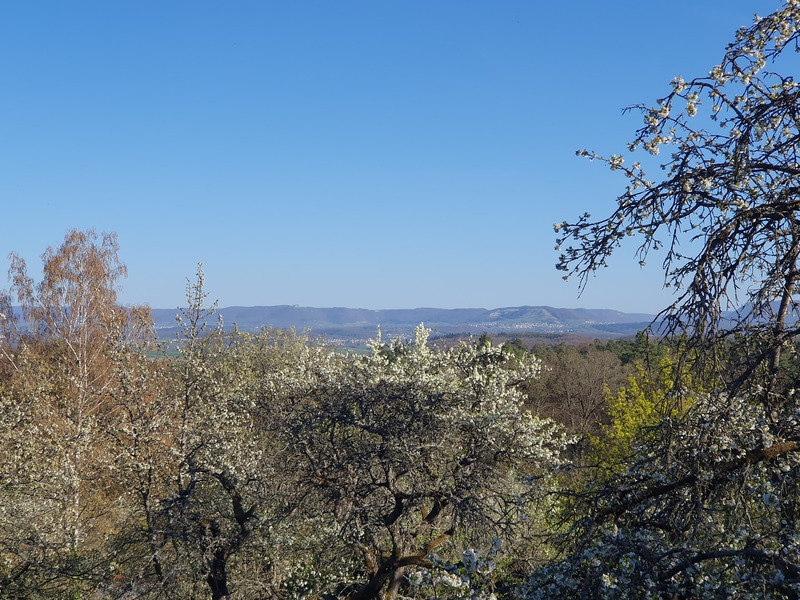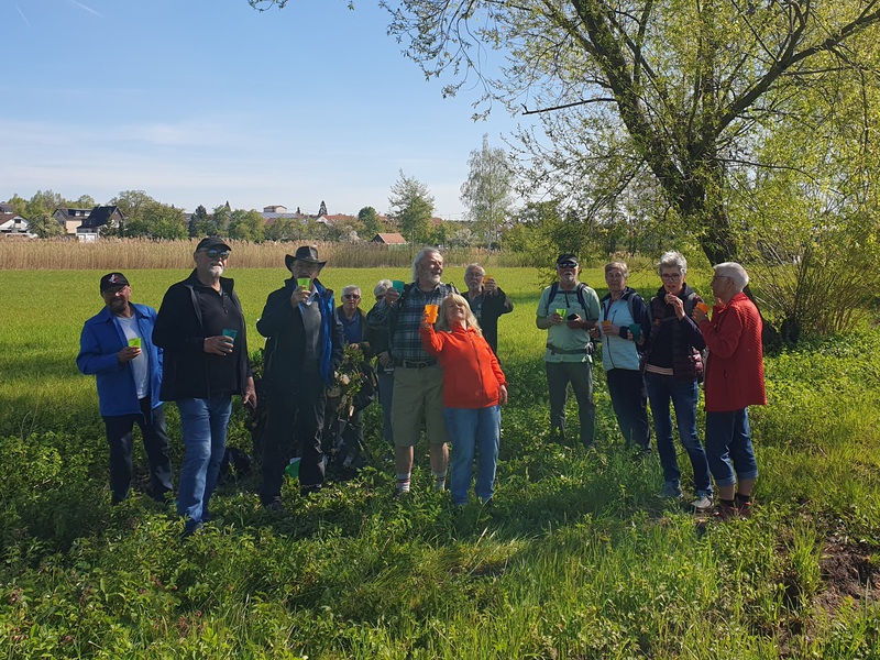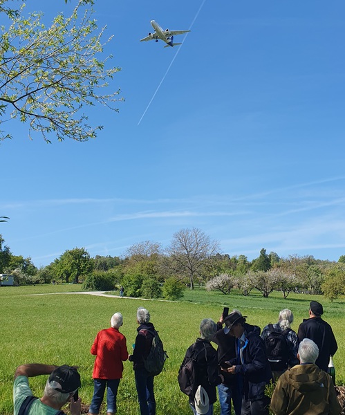Bei schönstem, wolkenlosem Wetter trafen 13 Wanderer am Bahnhof zusammen. Es war das erste Mal, dass wir am Rande der westlichen Filder unterwegs waren. Und es hat sich gelohnt! Es fing schon an mit unserem Frühstück direkt in der Einflugschneise des Flughafens auf der Weidacher Höhe. Ein Erlebnis, wie die Düsenvögel vielleicht 200 m über unsere Köpfe hinweg donnerten. Durch herrliche, blühende Wiesen und lichtgrüne Wälder ging es entlang von Stetten und Plattenhardt weiter. Über gute, bequeme Wege erreichten wir bald den Uhlbergturm mit toller Aussicht in Richtung Alb. Leider ist er unter der Woche nicht geöffnet. Trotzdem war der Ausblick vom Neuffen bis zum Rossberg super.
